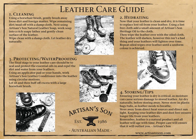 - Natural Leather Soap - gently cleans the toughest of grime.