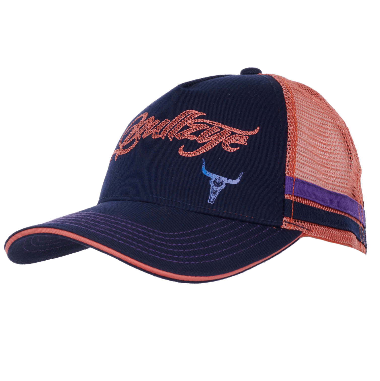 Bullzye Childrens Argyle Trucker Cap (B3W5920CAP) Dark Navy/Melon OSFM [SD]