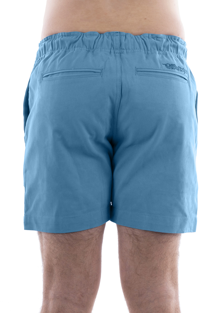 - Heavy weight twill short with elasticated waist and contrast waistband facing