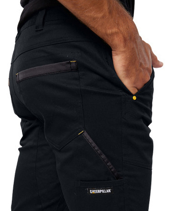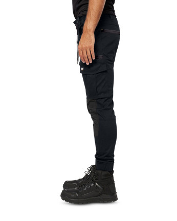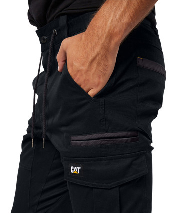 Weekend style meets the job site with CAT's modern industrial lightweight Dynamic Cuff Pant. These are packed with handy features like front left and back right cargo pockets, front slash pockets, rear welt pockets and knee overlays for better durability. The Dynamic Cuff Pant is a modern slim tapered fit with elastic cuffs at the hem.