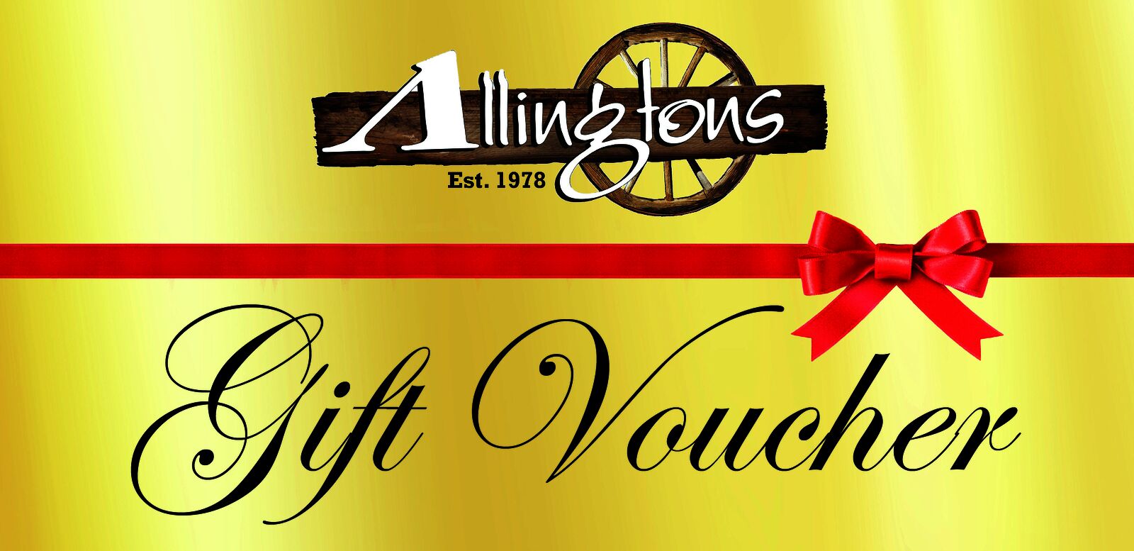 Allingtons Gift Cards can be redeemed online or in-store. They are the perfect gift for that hard-to-buy person.