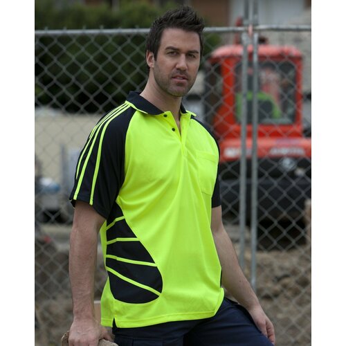 JB's Mens Hi Vis S/S Spider Polo (6HSP) Lime/Navy XS