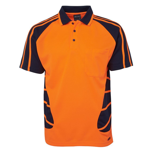 JB's Mens Hi Vis S/S Spider Polo (6HSP) Orange/Navy S