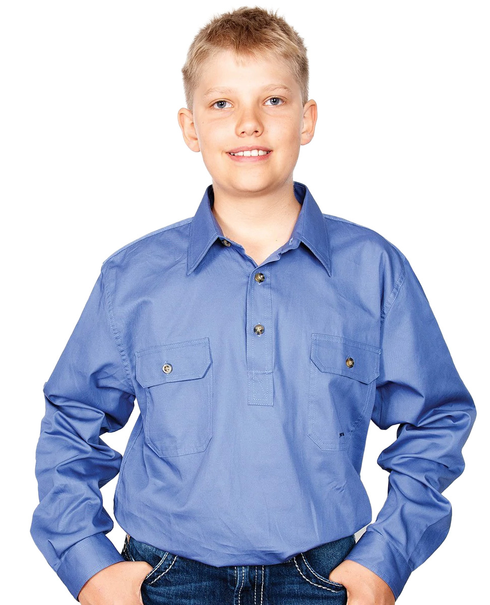 Just Country Boys Lachlan Half Button Work Shirt (30303) Blue S/6-7