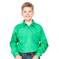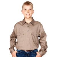 The perfect shirt for the young man on the land. In the same style as the big boys in a 100% light weight cotton fabric with 1/2 button closure and double button down pockets.