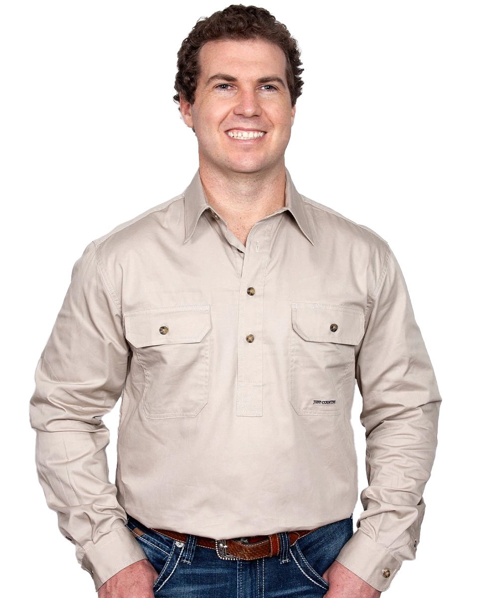 Just Country Mens Cameron Half Button Work Shirt (10101) Stone 3XL