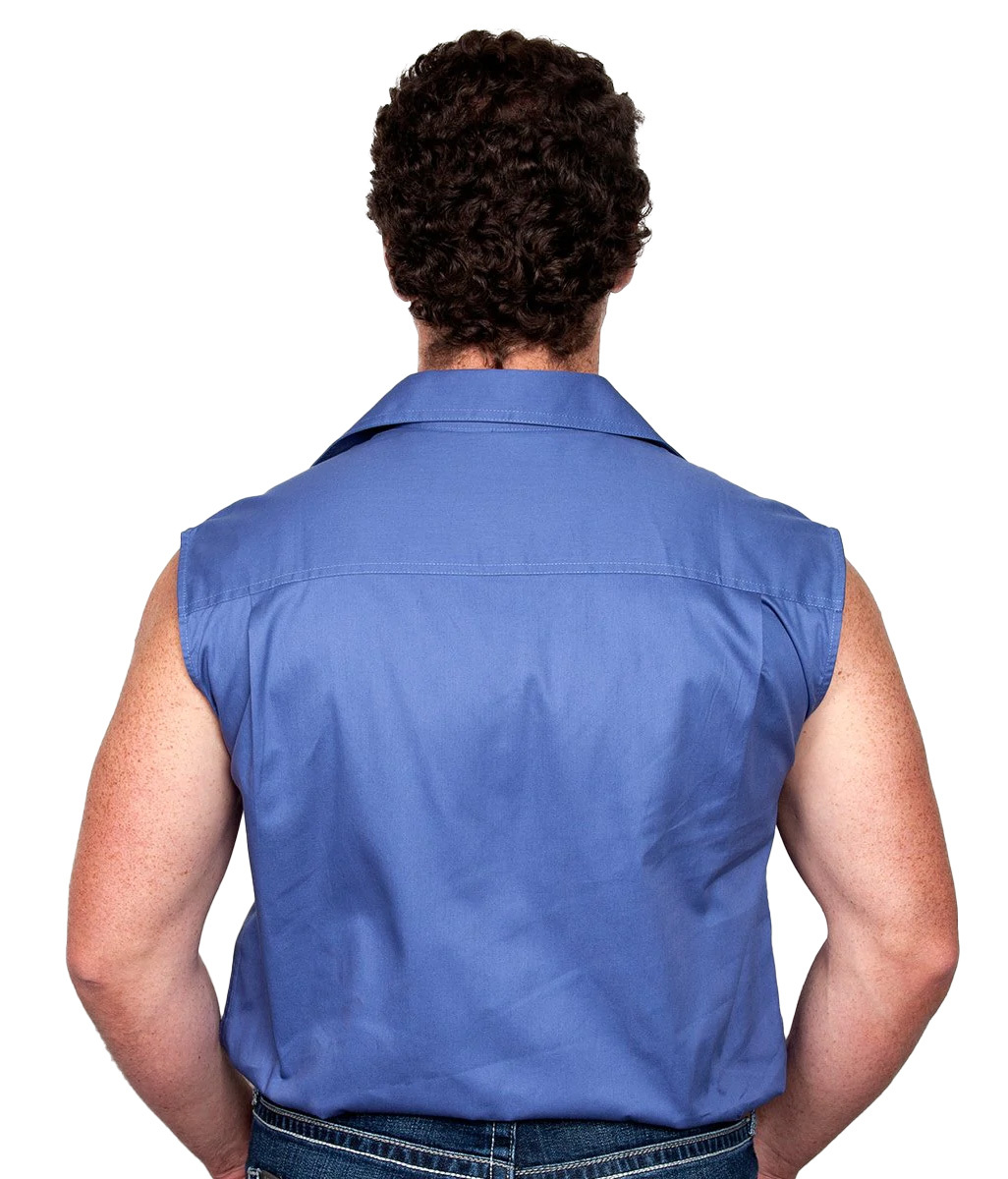 Just Country Mens Jack Sleeveless Half Button Work Shirt (10103) Blue 2XL
