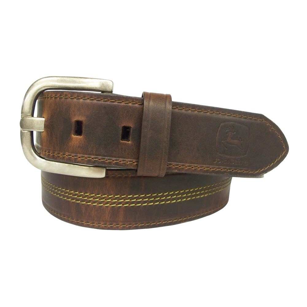 John Deere Mens 38mm Oil Tanned Leather with Silver Finish Buckle Belt (4503500-200-38) Brown 38