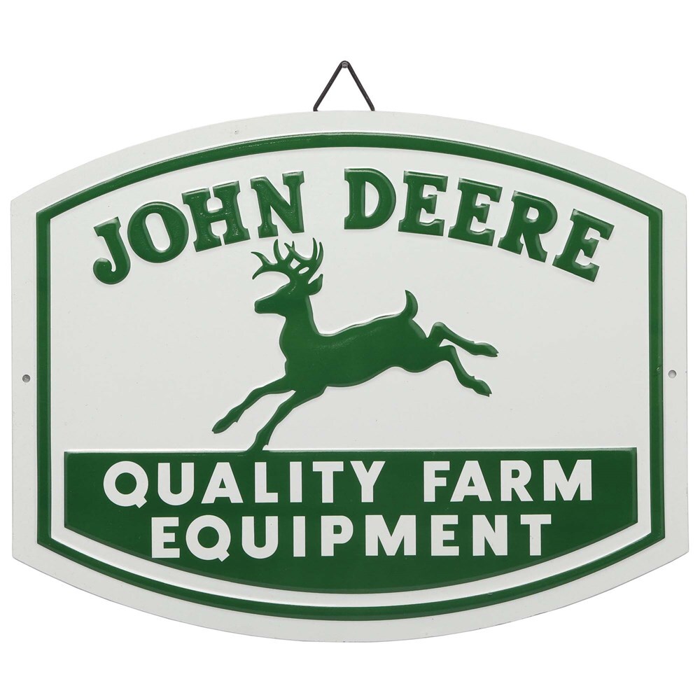 John Deere Quality Farm Equipment Retro Embossed Metal Sign 33cm W x 25cm H (90184182-S)