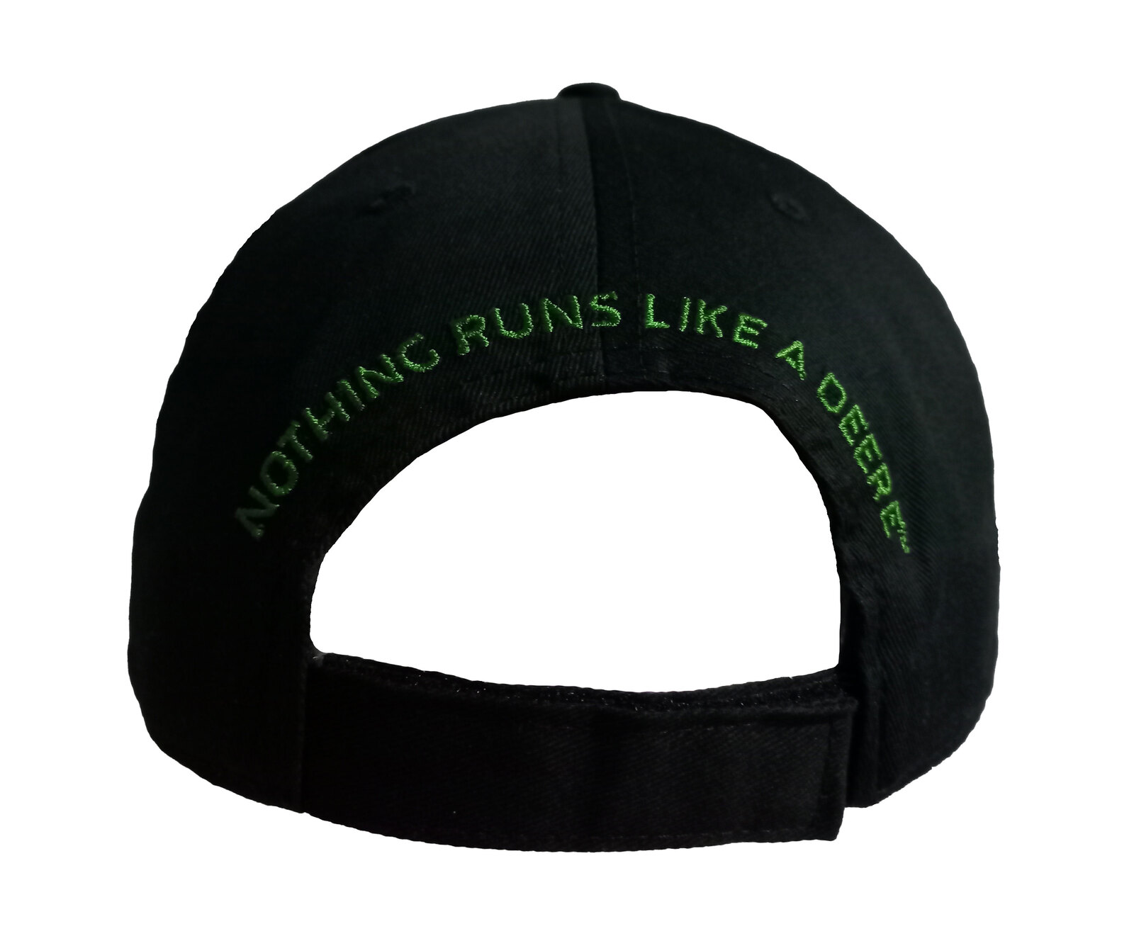 - 'Nothing Runs Like A Deere' embroidered on the back