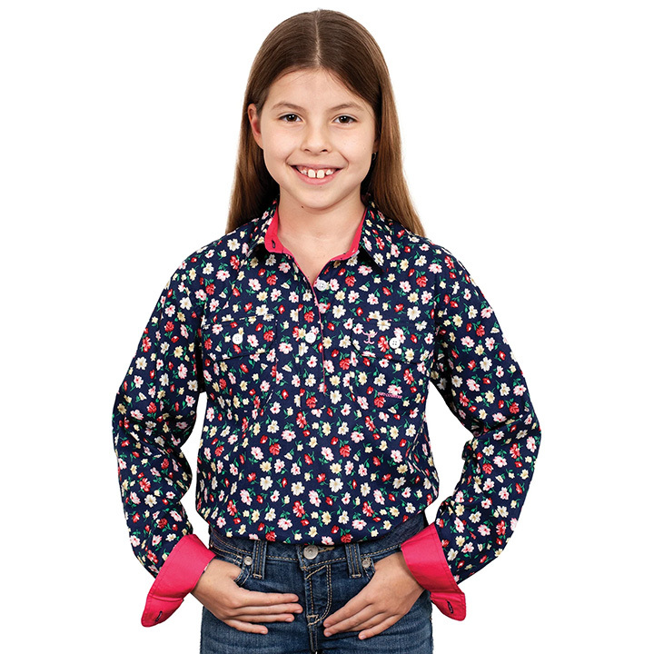 There's a plethora of half button options out there - in just about every colour you can think of. The Just Country Harper Shirt is one that's crafted in 100% light-weight cotton with a pretty feminine print that the girls will love!