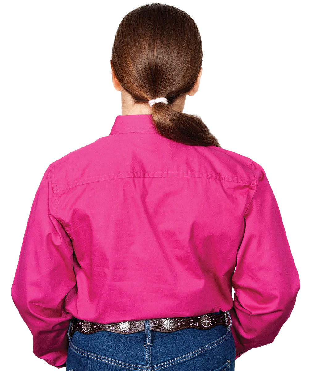 Well, now the kids can have the same style as the big girls! The Kenzie Half Button Work Shirt is crafted in 100% light-weight cotton fabric. It's the perfect shirt for kids on the land.