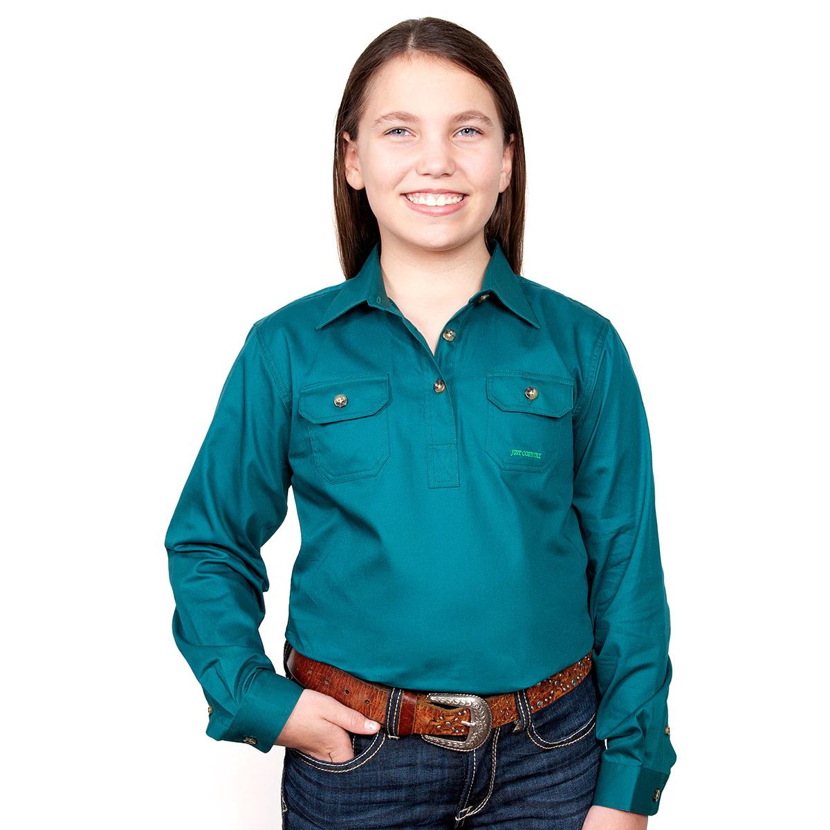 Just Country Girls Kenzie Half Button Work Shirt (60606) Forest Green S/6-7