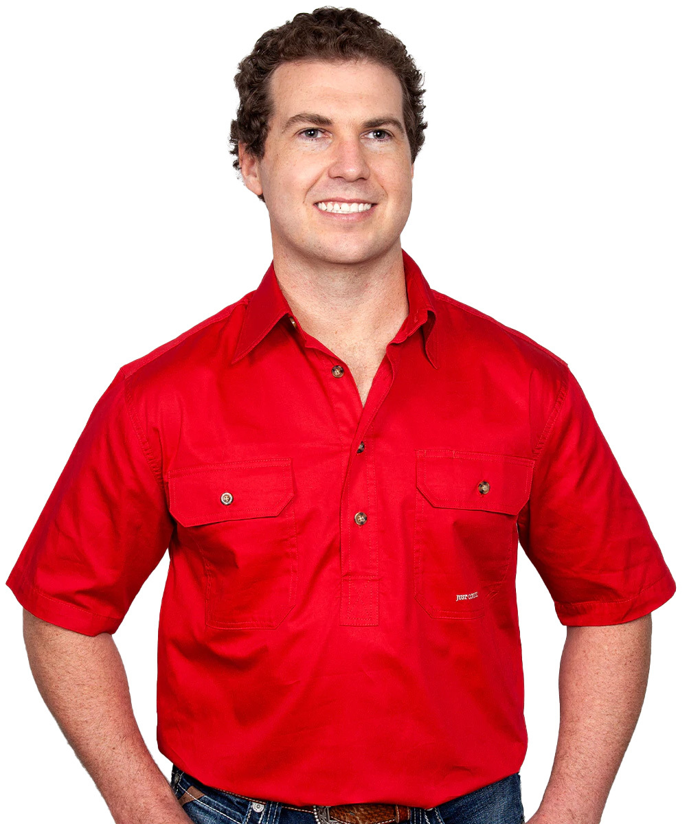 Just Country Mens Adam S/S Half Button Work Shirt (10104) Chilli S