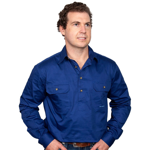 Just Country Mens Cameron Half Button Work Shirt (10101) Cobalt S