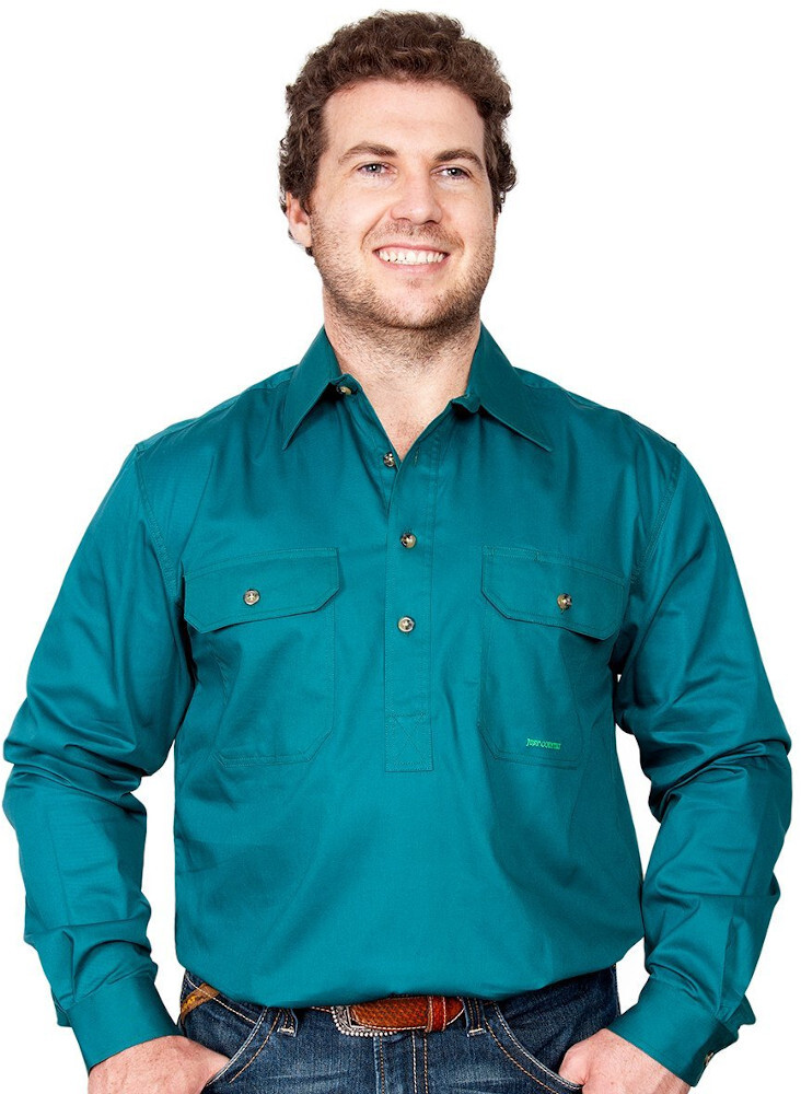 Just Country Mens Cameron Half Button Work Shirt (10101) Forest Green S