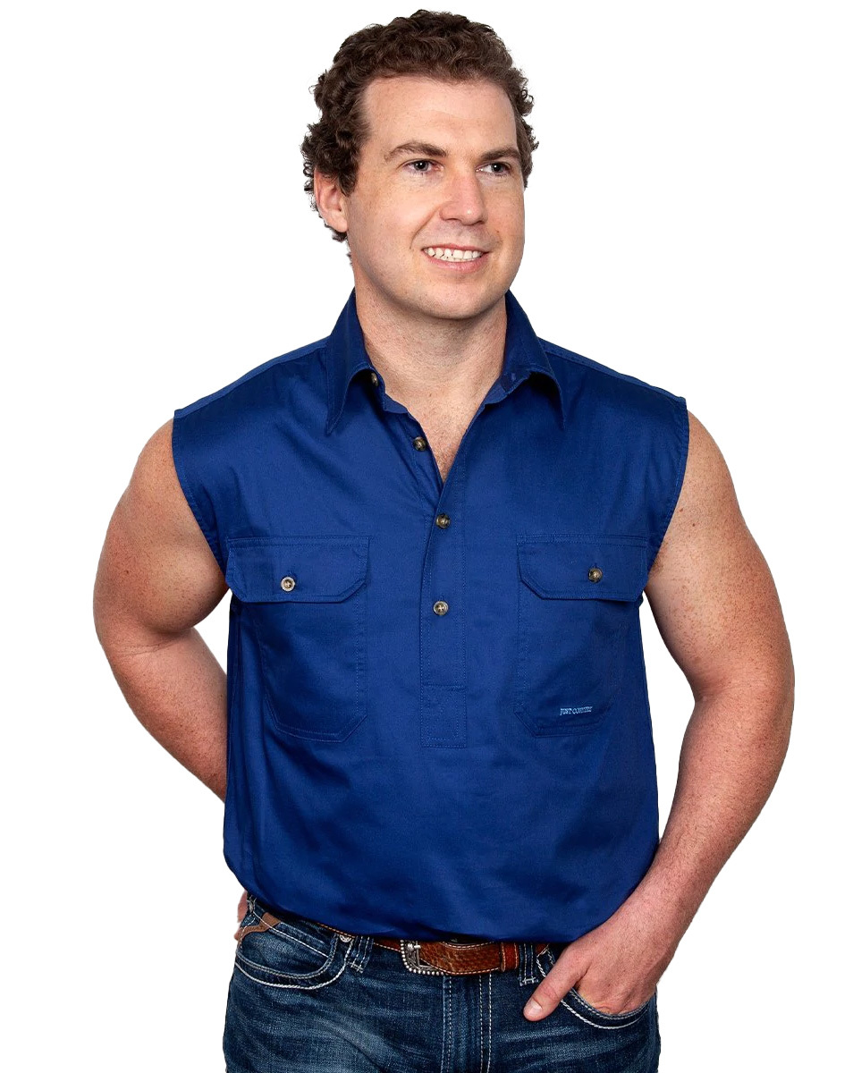 Just Country Mens Jack Sleeveless Half Button Work Shirt (10103) Cobalt XL