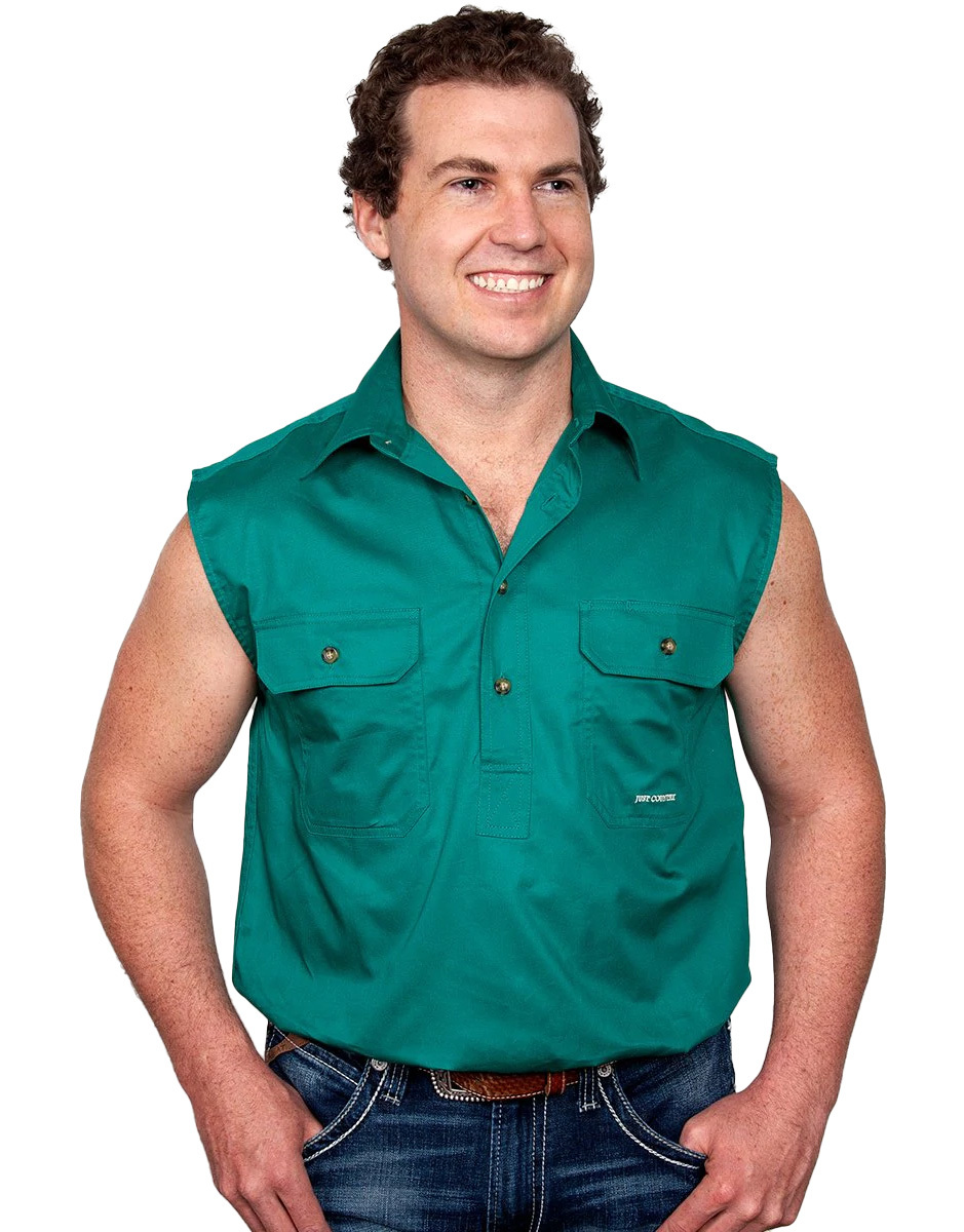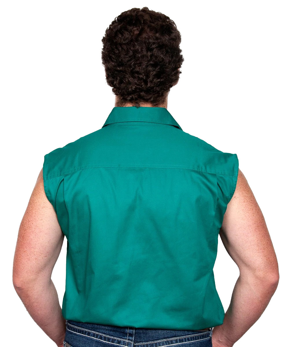 Just Country Mens Jack Sleeveless Half Button Work Shirt (10103) Dark Green M