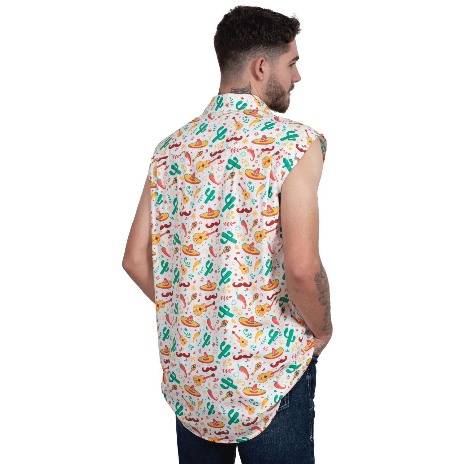 Just Country Mens Logan Half Button Sleeveless Print Shirt (MWNSR242) White Cactus/Chilli M [SD]