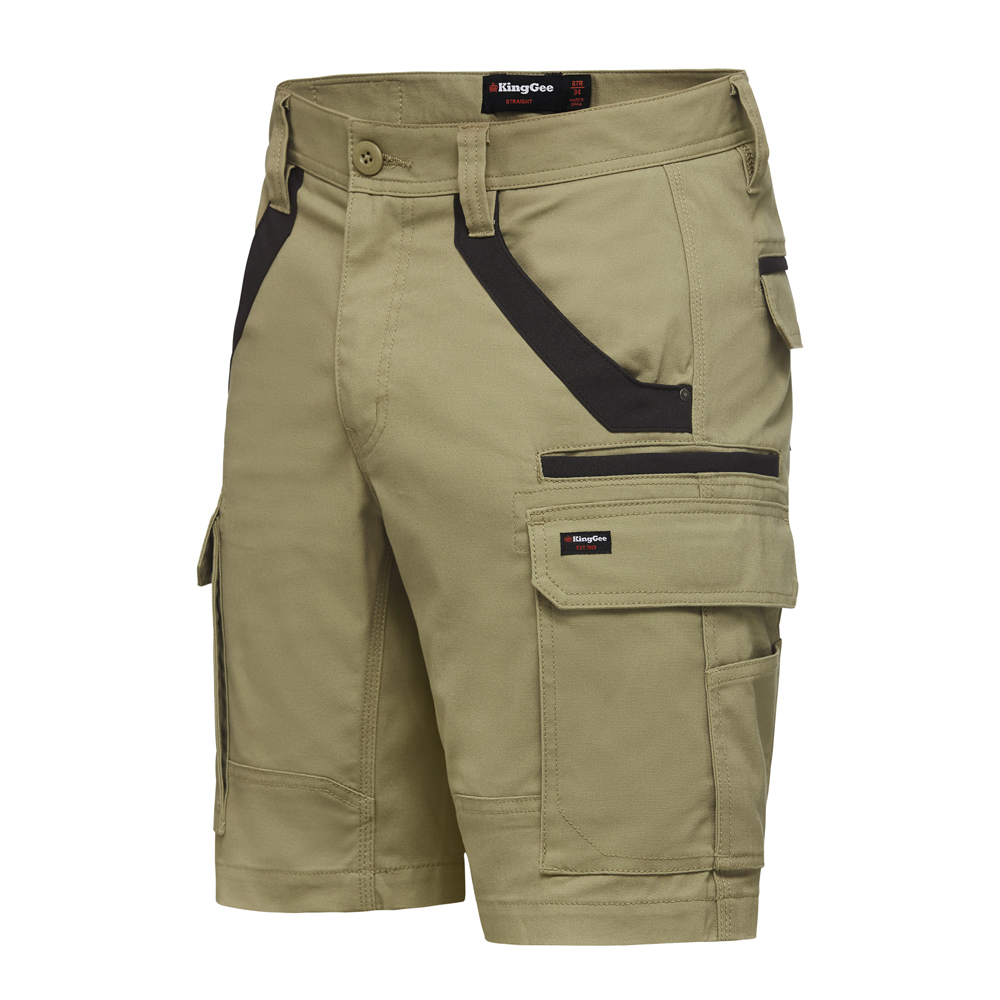 These cargo shorts from KingGee come with a fashion edge. The canvas weave is durable, tough and breathable but has stretch for comfort and ease of movement as well as a gussetted crotch. With plenty of pockets to keep everything you need close at hand they're a great all-round work pant for whatever you do!