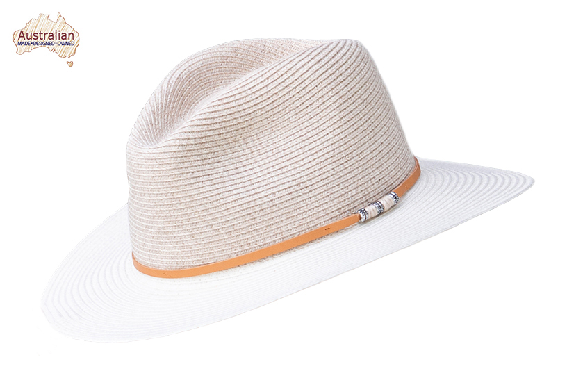 Striking two-tone combinations featuring a marled crown with a solid brim is the highlight of the Mooloolah Creek. Made in Australia, this hat is trimmed with a fine, tonal, genuine leather strap fastened with an elegant bead and rope clasp on the side of the crown. FLEXIBRAID® provides UPF50+ excellent sun protection and convenient travel performance.