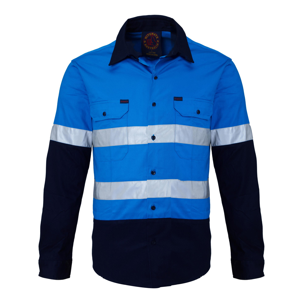 Ritemate Adults Hi Vis Open Front Shirt with Tape (RM1050R) Blue/Navy XS