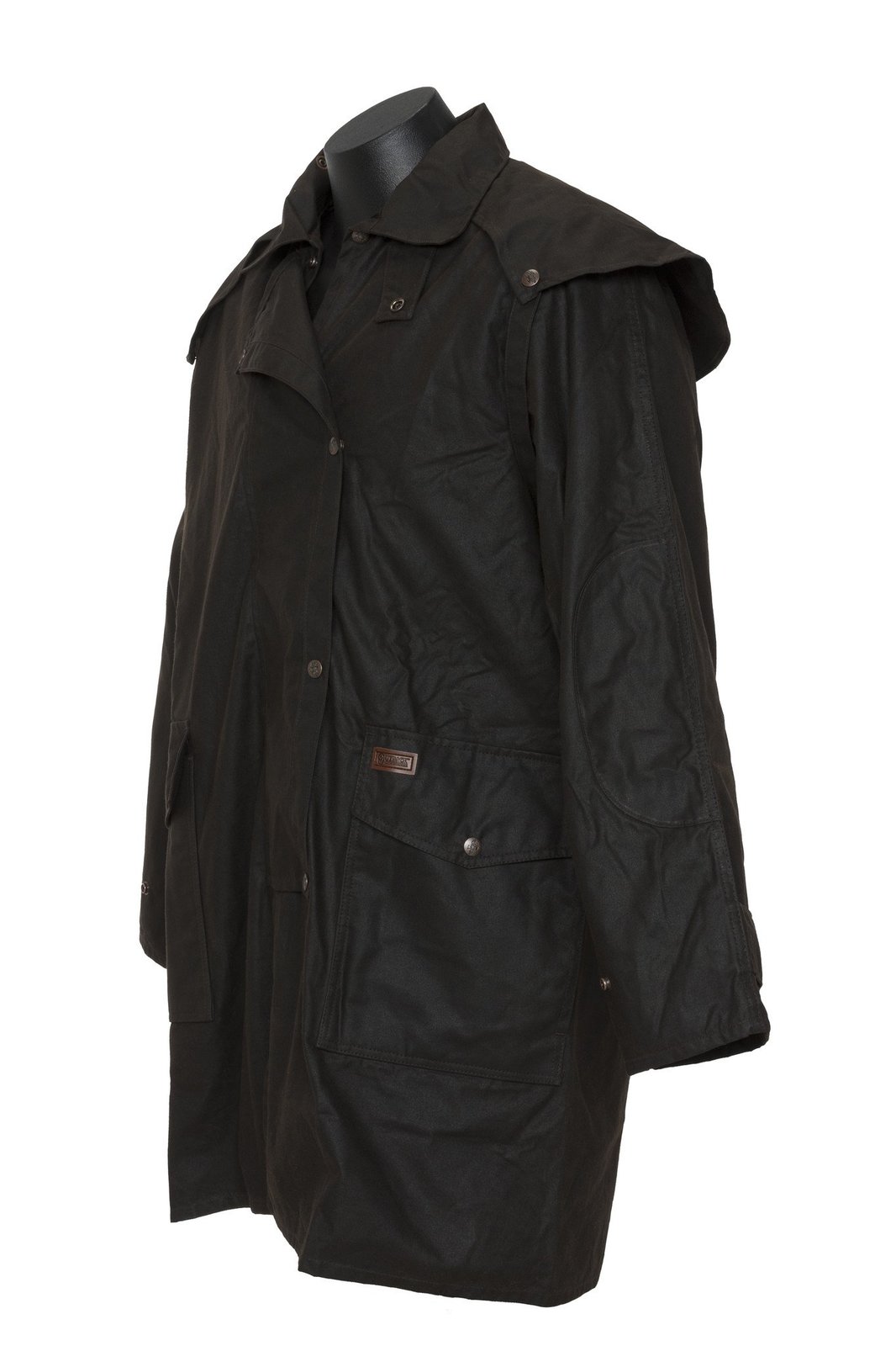 This knee length oilskin jacket is the short version of the traditional Oilskin Duster Jacket.