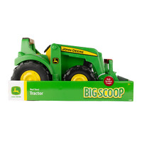 The John Deere Big Scoop Tractor is the ultimate tractor sand pit toy! This tractor features a heavy-duty steel hood, oversized free rolling wheels for hours of action-packed play and a roll bar handle to grab and go. A large functional front loader features an easy-grip handle to scoop and dump all types of big loads; rock, sand, dirt or whatever the job might be.