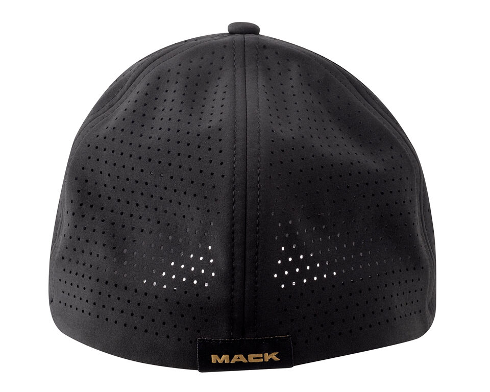 The Mack Fitted Curved 6 Panel Cap features a rubberized Mack logo on the front and the peak. The curved brim offers shade up front, and the lazer cut holes at the back offer plenty of ventilation. It has a super soft inner band, but it is not adjustable. It does have a bit of stretch in it - so if you're smooth, shaved or barren on top - this could be the most comfortable cap you've ever owned!