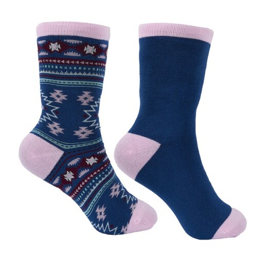 Pure Western Childrens PW Crew Socks - Twin Pack (PCP5970SOC) Navy/Pink 9-3
