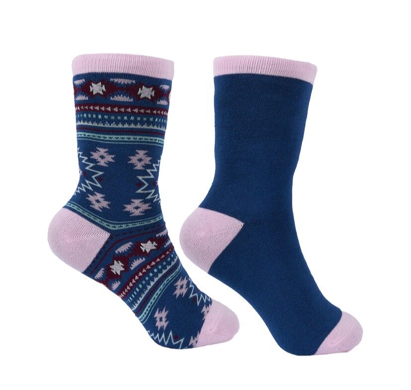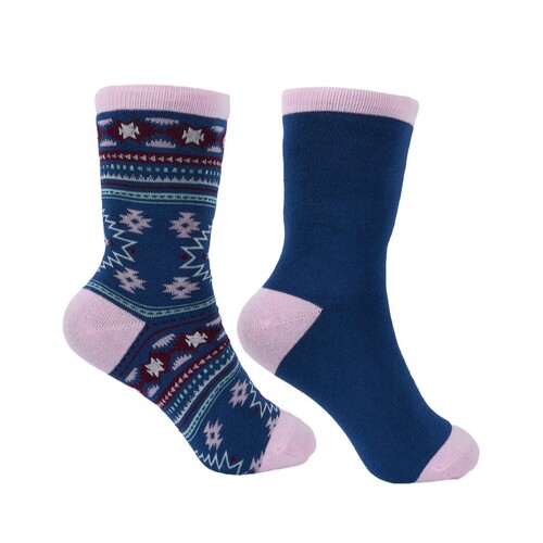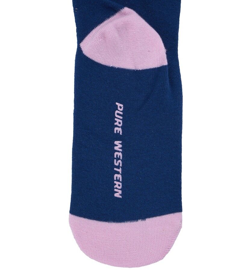 Pure Western PW Crew Socks - Twin Pack (PCP2949SOC) Navy/Pink 8-11