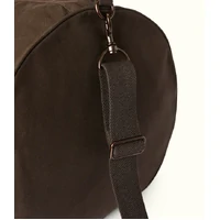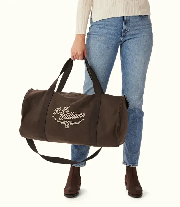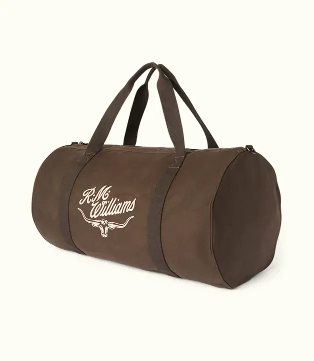 Hit the road with this rugged travel companion, cut from durable Halley Stevensons waxed cotton canvas and finished with cotton webbing handles, a removable cross body strap and an RM script Longhorn logo print.