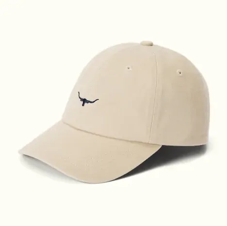 Crafted from 100% organic cotton twill, this cap features an embroidered mini Longhorn logo, an adjustable strap with a brass branded logo metal clasp, and a stylish, comfortable fit.