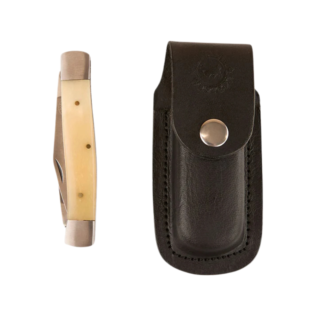 Head Stockman – Classic Triple Blade Folding Knife for Everyday Adventures Discover the Head Stockman, a functional, reliable, and classic pocket knife designed for travellers, outdoorsmen, and collectors alike. This tri-blade folding knife combines timeless craftsmanship with modern materials, delivering the perfect multi-purpose tool for any adventure. Featuring three precision blades measuring 70mm, 55mm, and 50mm, the Head Stockman offers unmatched versatility and convenience in a compact design. Each blade is crafted from premium VG10 stainless steel, renowned for its superior edge retention, strength, and corrosion resistance, ensuring exceptional performance in any environment. The unique camel bone handle provides a comfortable, balanced grip and a classic aesthetic that complements the knife’s rugged elegance. Complete with a black leather sheath, this pocket knife is as practical as it is stylish — ideal for camping, hiking, travel, or everyday carry.
