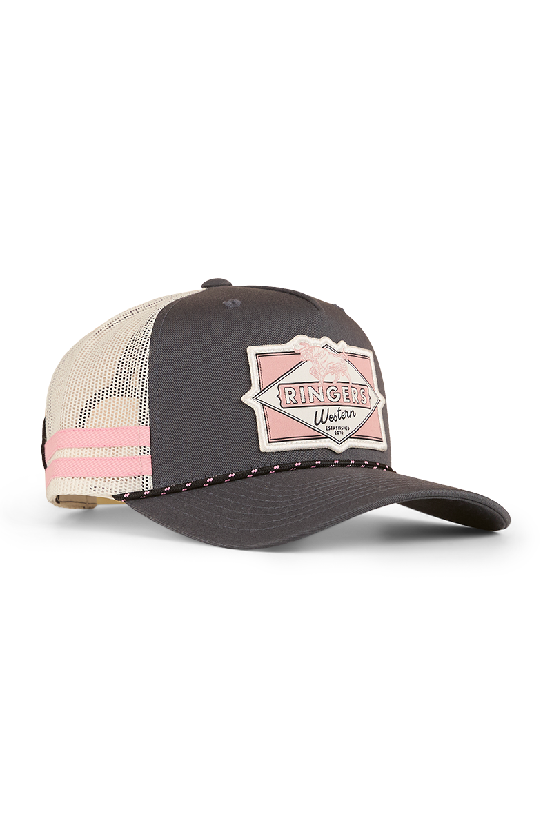 Ringers Western Hometown Trucker Cap (424039RW) Charcoal/Rosey OSFM
