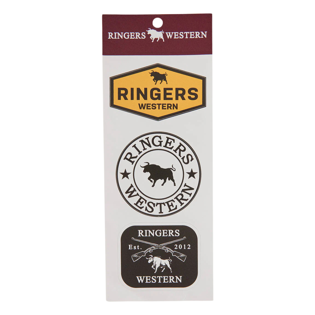 3 x Ringers Western stickers. This pack features vinyl stickers with their Classic Ringers Logo, Servo logo and Shotgun Logo.