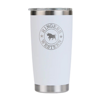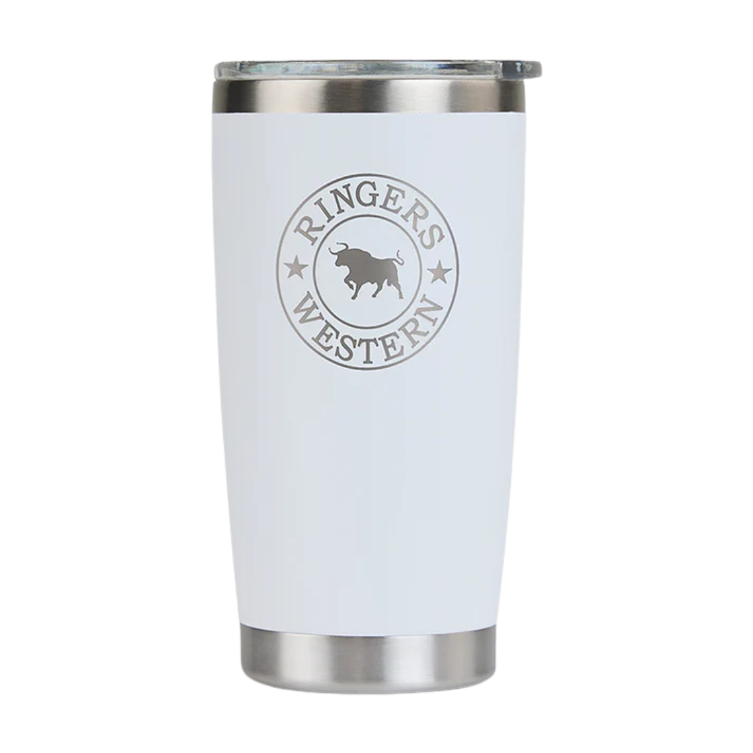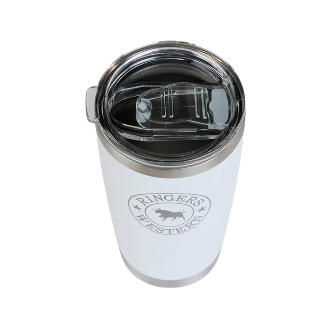 A go-to for drinks on the go, the Riverstone tumbler is the perfect companion, fitting perfectly inside your cup holder. This tumbler is made from 18/8 kitchen-grade stainless steel and rust resistant. The double-wall vacuum insulation will keep your morning coffee hot up until the very last sip. The acrylic sipping lid adds a layer of protection keeping your coffee contained and will help prevent major spills. It features a printed Ringers Western logo on the front and back of the cup.