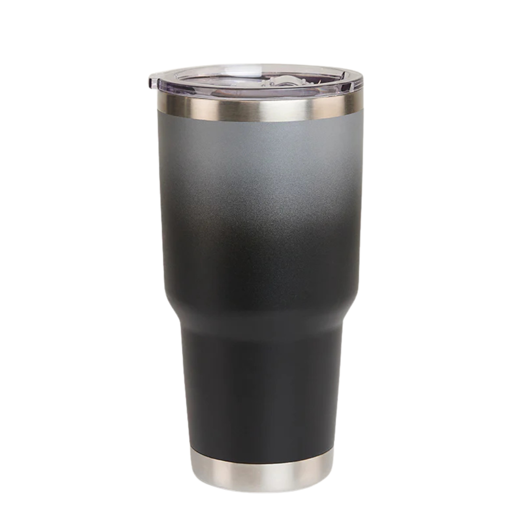Double-walled and made with vacuum-insulated, food-grade stainless steel, this tumbler has an 887mL (2 stubbies or 2 coffees easy) capacity with a clear lid and slider.