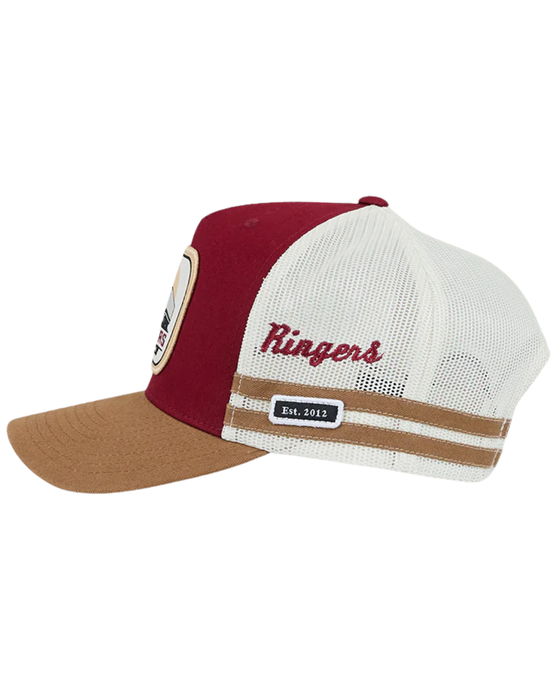 Meet the Big Rig Trucker Cap—a bold addition to any collection of trucker caps. Designed with a unique Ringers Western truck badge on the front panel, this deep-fit trucker cap is crafted to stand out. Twin side stripes and embroidered mesh panel details add style, while the breathable mesh provides comfort on hot summer days. Whether you’re cruising the open road, attending a festival, or just showing off your Ringers pride, this stylishly designed trucker cap has you covered.
