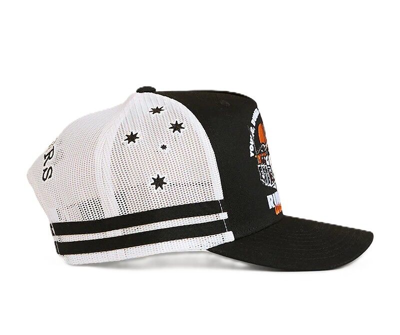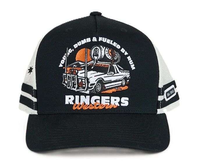 Ringers Western country trucker caps capture the heart and soul of everything we stand for. The Rum Runner Trucker Cap is a deep fit design and features a mesh back for optimal ventilation, perfect for hot summer days. A Rum Runner woven badge is complemented by twill side stripes whilst an adjustable snapback provides a customisable and comfortable fit.