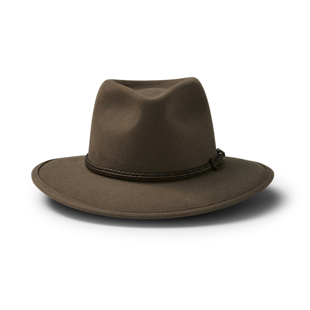 Featuring a soft, conforming structure and a unique 'memory', this soft, pliable felt hat is designed specifically for the adventurer. It can be easily worked back into shape if crushed during your travels. It has a plaited bonded leather band and a soft inner sweatband.