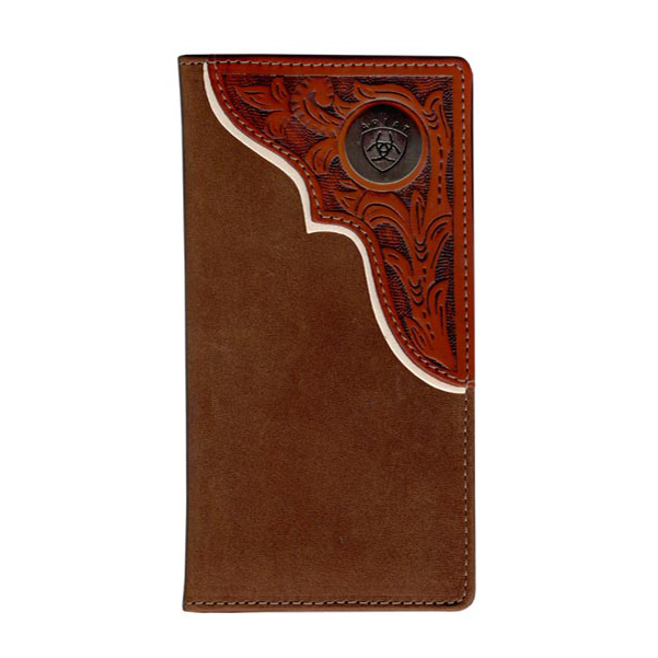 Contrasting premium leathers crafted with hand tooling and intricate stitching, finished off with an Ariat logo feature concho. This is quality, durability and style in a feature wallet that just gets better with age.