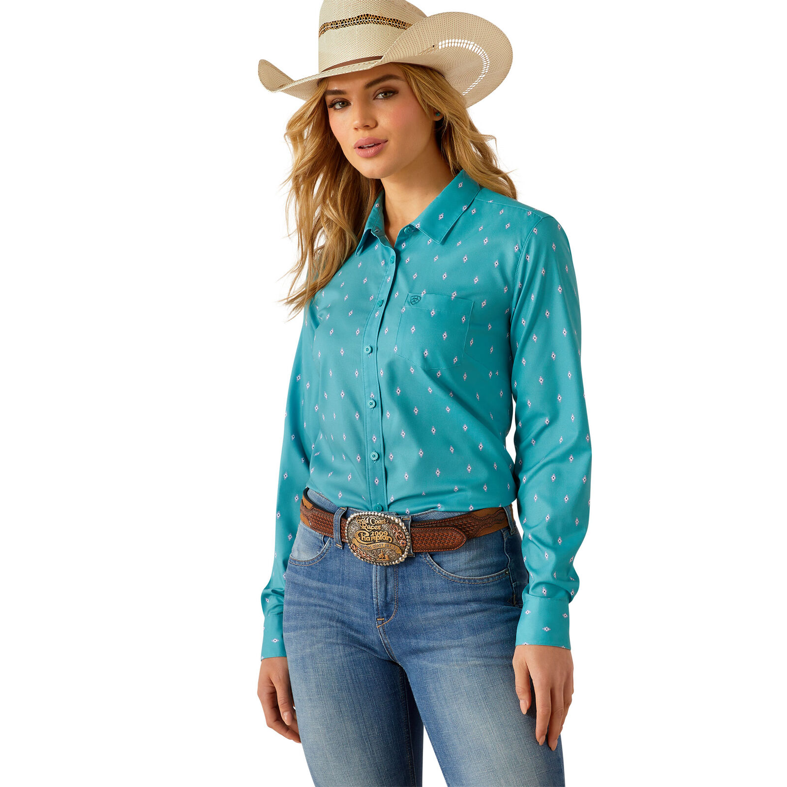 Athlete-tested and arena-proven, the Ariat® Kirby Pro Shirt is built to compete. It's engineered with an easy-care performance fabric, which stretches with your every move and looks polished right out of the wash. Add UPF sun protection and a flattering, saddle-ready fit, and you've got a shirt that can keep up.