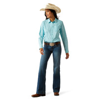 Ariat Womens Wrinkle Resistant Team Kirby Stretch L/S Shirt (10055087) Aruba Blue Ikat M