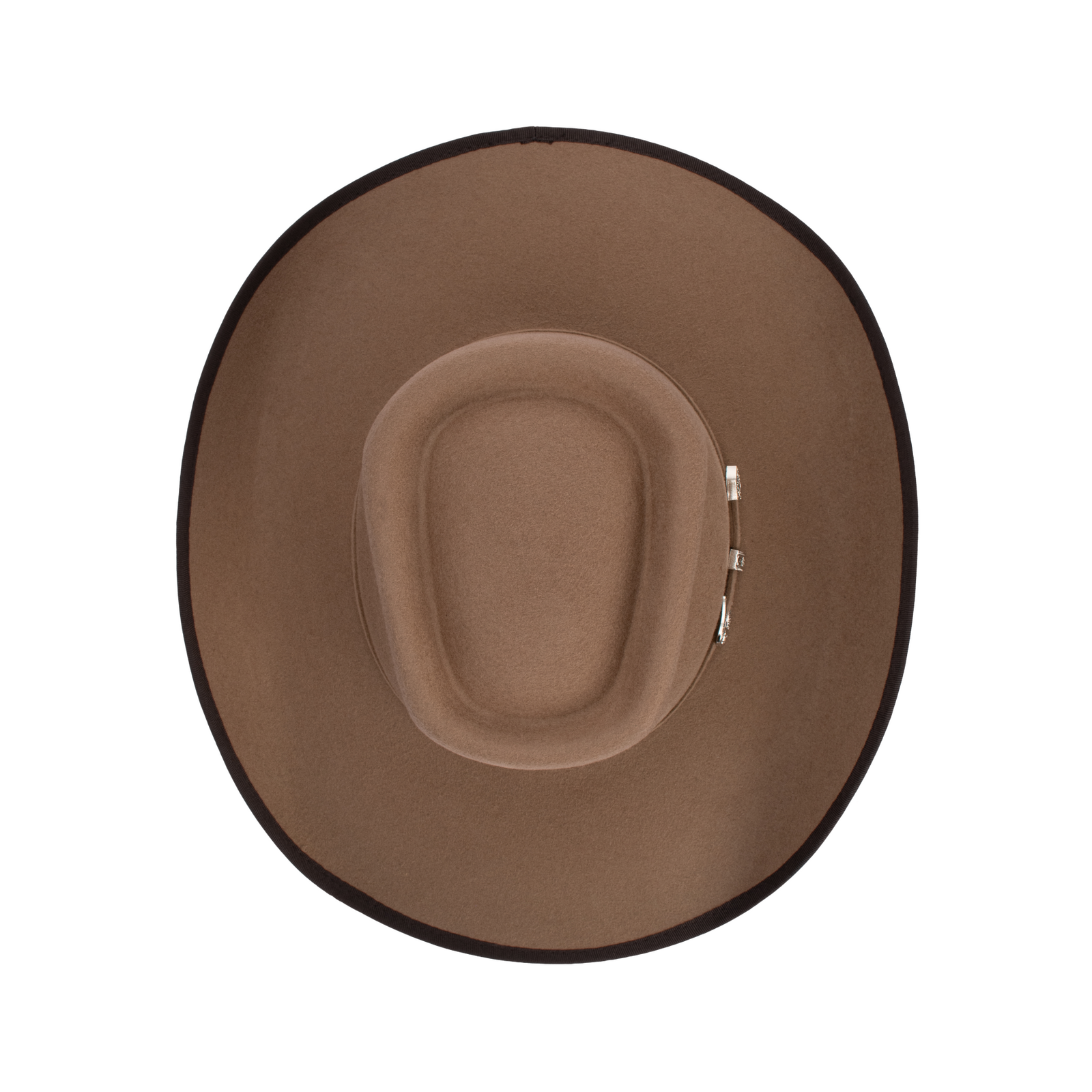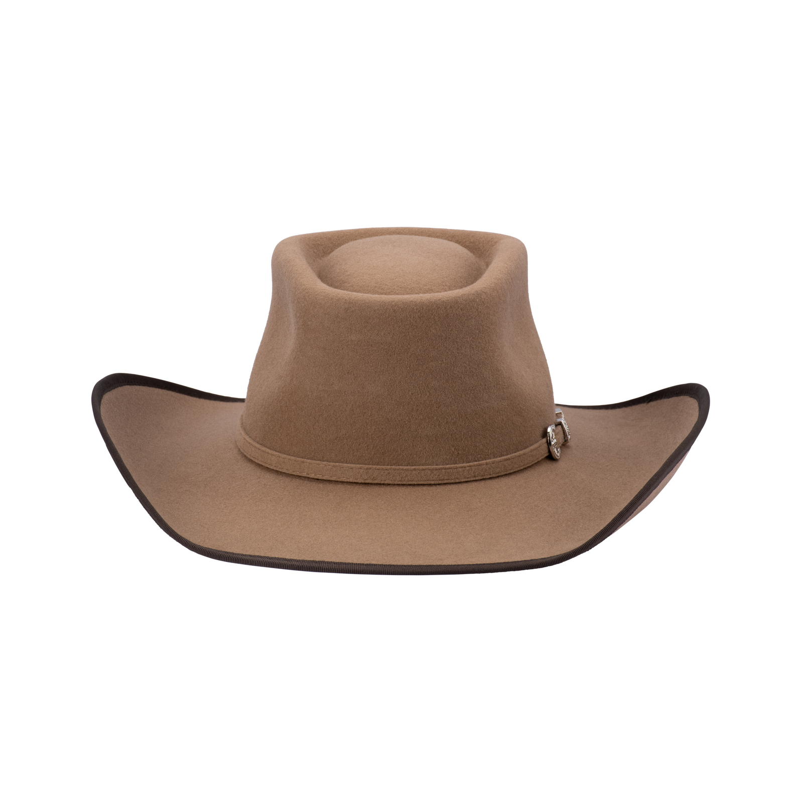 Avenel sources Australian wool felt for their Billabong Hat, a fibre that is resilient and naturally water-repellent. The felting process involves matting and pressing wool fibres together with the application of heat and moisture until a strong felt emerges. Craftspeople then mould that felt over hat blocks to create the crown shape and brim profile. The edge is them trimmed and bound, and the sweatband and miniature western belt hat band are fitted. The end result is a robust, softly textured hat that holds shape, yet offers comfort and durability.