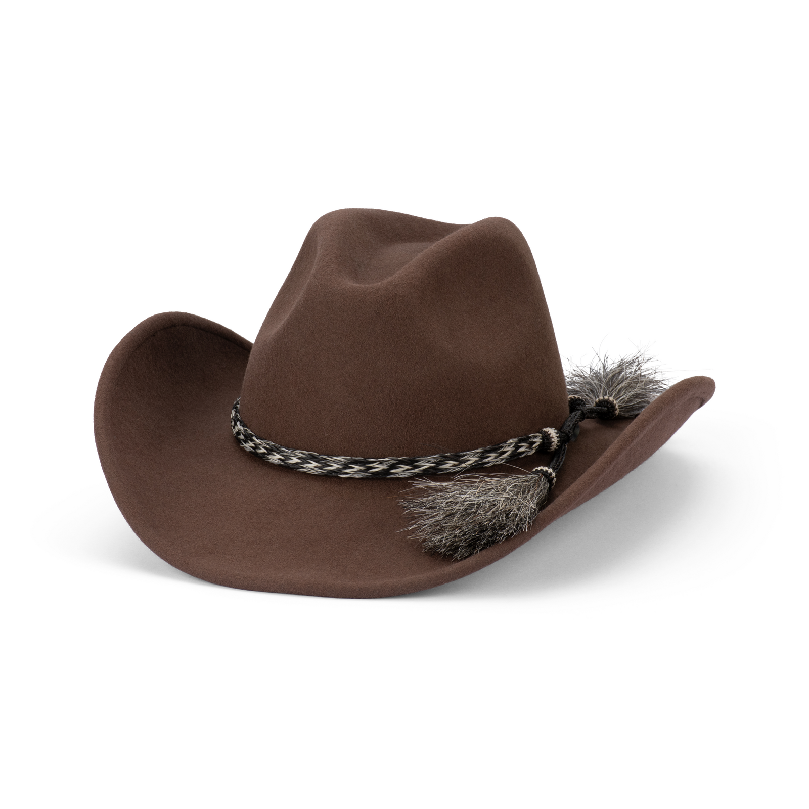 The children's Wrangler Hat is made from Australian wool felt. Wool felt is ideal for hats. It holds it's shape, sheds light rain, and is durable and wearable. This dense, soft felt is formed by matting wool fibres together with the application of heat, moisture, and pressure. Then the felt is moulded over a hat block to shape the crown and brim. For The Wrangler, the crown is shaped to a 9 cm height, and the brim is set at a 9 cm width. These dimensions give a classic western silhouette. The hat is then trimmed and finished with a horsehair hatband. The Wrangler is also designed for life on the go. It's a hat that’s packable and bounces back after being crushed or stored in a bag - ideal for kids who are always on the move. The craftsmanship aims to balance durability with a kid-friendly fit for hours of outdoor activity.
