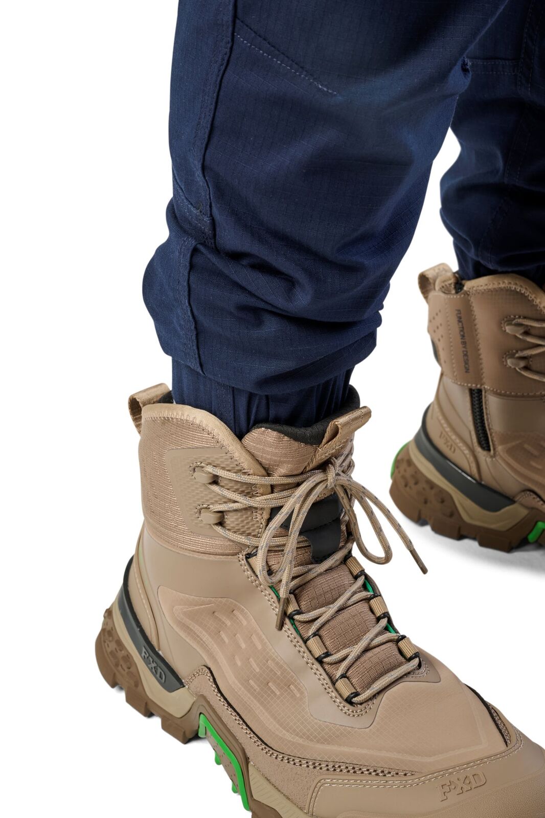 FXD WP.12 and 12C ( cuffed ) elastic waist stretch ripstop work pants are built using a durable lightweight 240gsm / 7.1 ounce stretch ripstop and features dura500™ advanced nylon abrasion resistant reinforcing in high wear zones. The elastic waistband features an in-built comfort stretch elastic for wearer comfort and a switchable drawcord for internal or external use.
