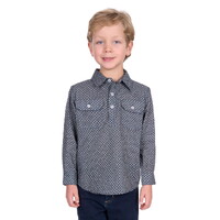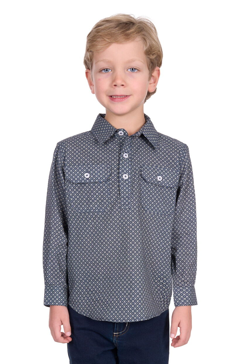 Hard Slog Childrens Tomson Half Button L/S Shirt (H5S7101184) Navy/Tan 4 [SD]