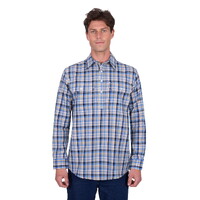 Hard Slog Mens Gibson Half Button L/S Shirt (H5S1126185) Blue/Tan M