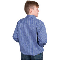 Just Country Boys Brayden Half Button Print L/S Work Shirt (BWLS2588) Cobalt/Light Blue Check XXS